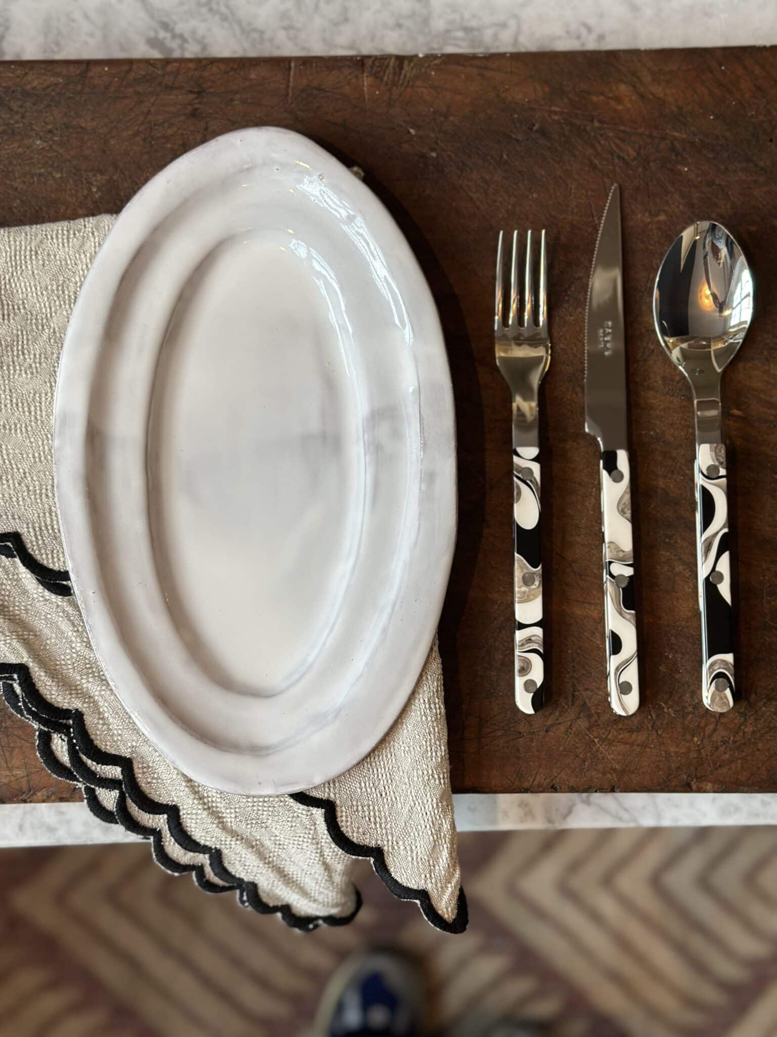 Elegant kniv fra Sabre Paris, fremstillet af poleret rustfrit stål og akryl. En stilfuld blanding af moderne design og kvalitet. De smukke håndtag giver et legende og eklektisk udtryk – skabt til at inspirere til borddækningen. Alle håndtag har mindre variation i mønsteret.