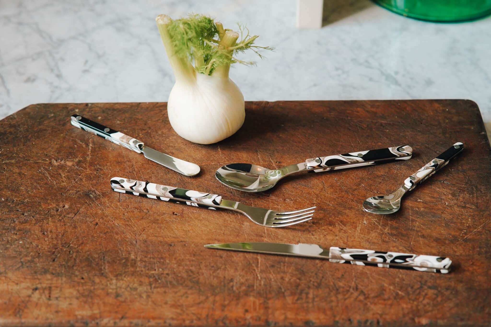 Elegant bestik fra Sabre Paris, fremstillet af poleret rustfrit stål og en stilfuld blanding af moderne design og kvalitet. De smukke håndtag giver et legende og eklektisk udtryk – skabt til at bringe glæde og inspiration til borddækningen.
