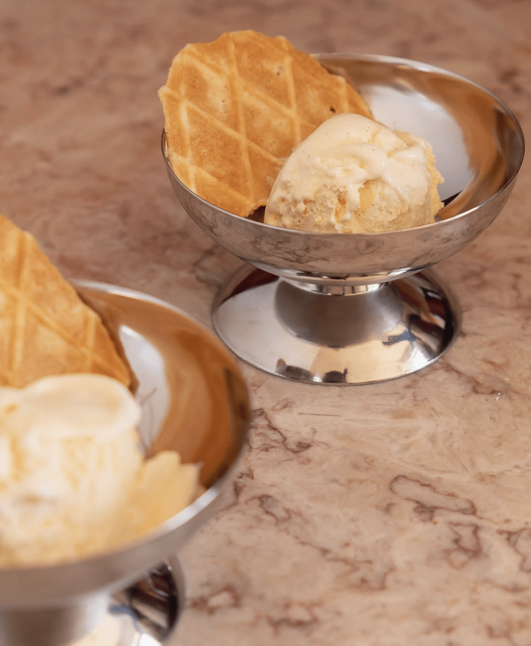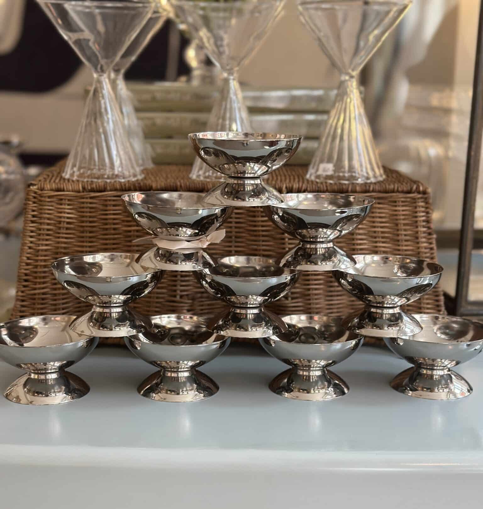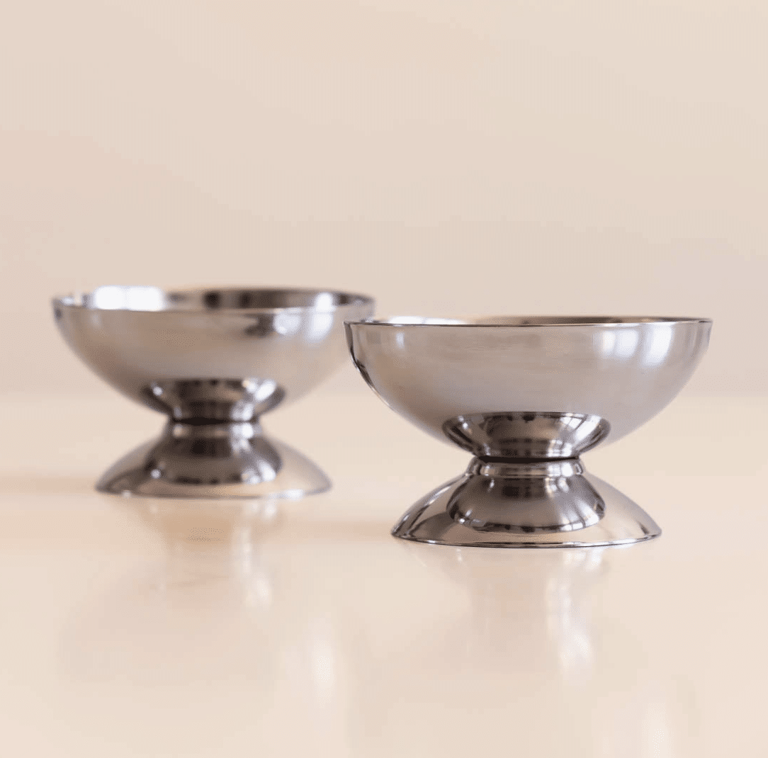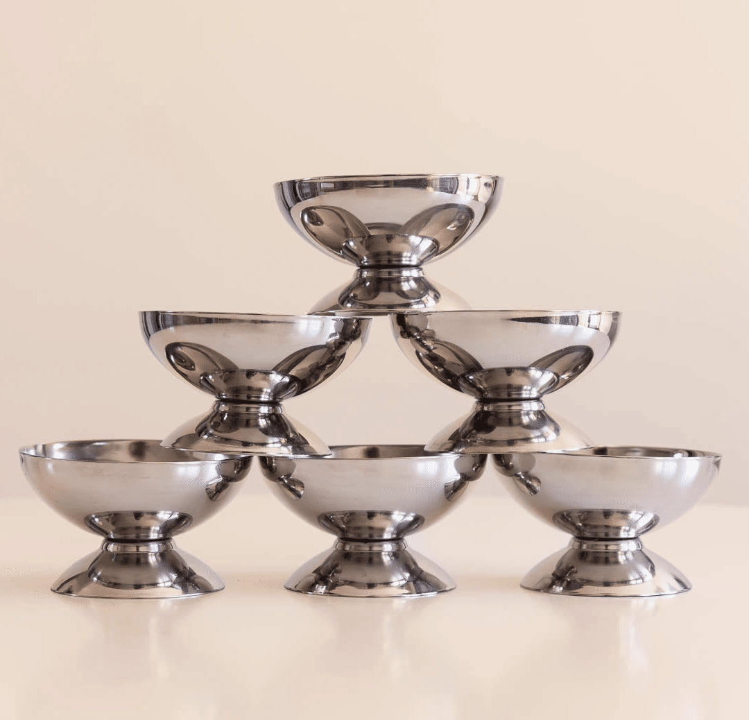 Disse klassiske isskåle i rustfrit stål – kendt som Coupe à Glace – er en fast del af cafélivet i Frankrig, hvor de bruges på caféer og brasserier til servering af isdesserter, sorbeter, frugtsalater og andre kolde småretter.