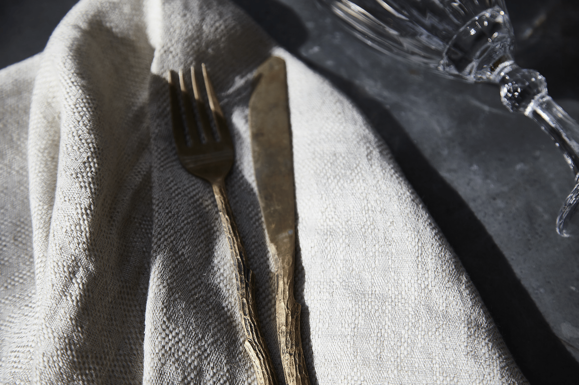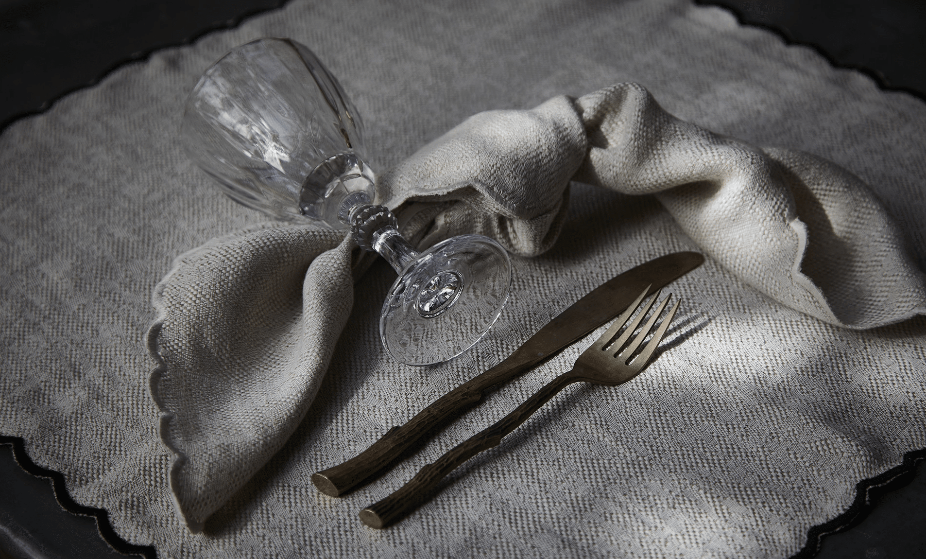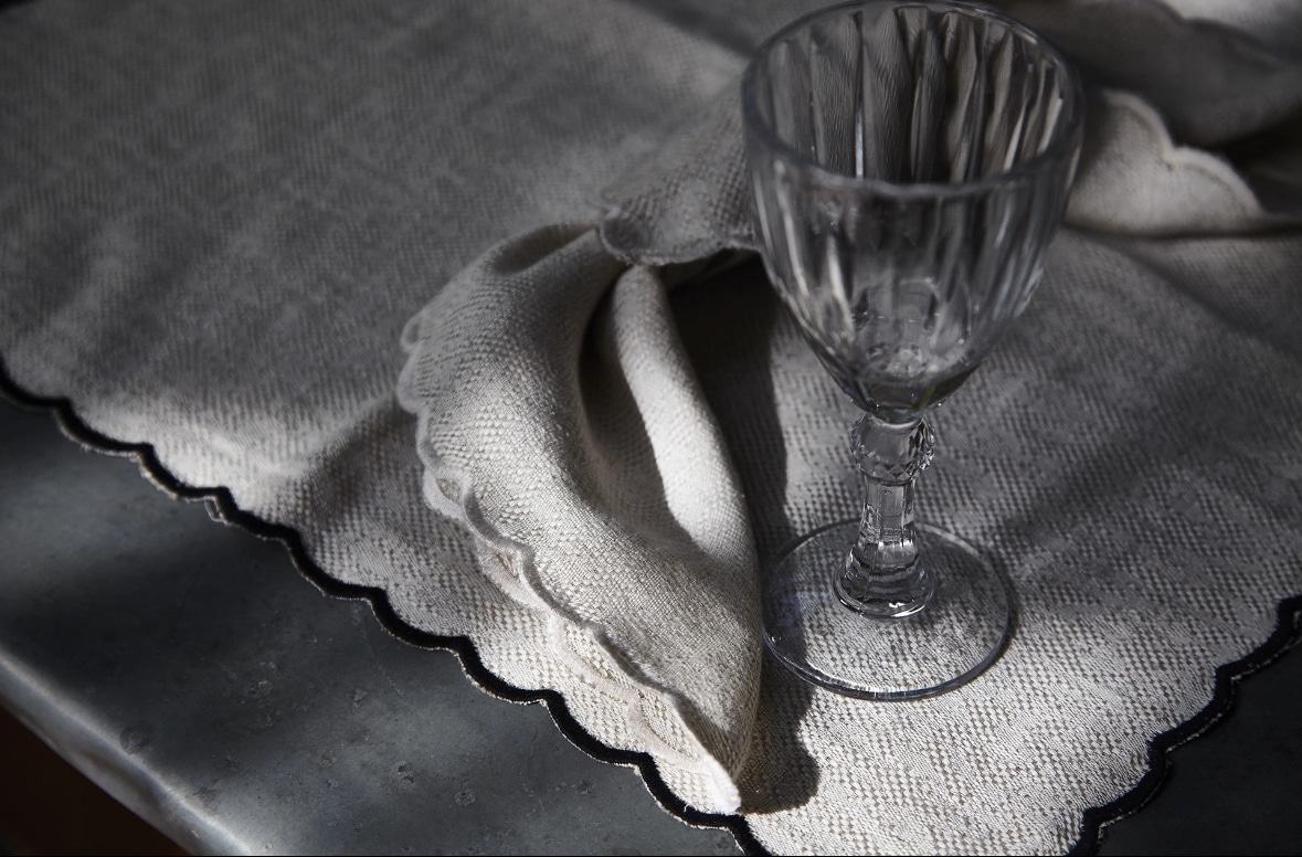Mundserviet i naturfarvet med bølget kant. Designet i Paris og god til at skabe den helt rigtige kreative og poetiske stemning. Passer godt til både den klassiske borddækning eller til mere minimalistisk stil. Mundservietten har et lækkert casual look pga den bløde kvalitet.