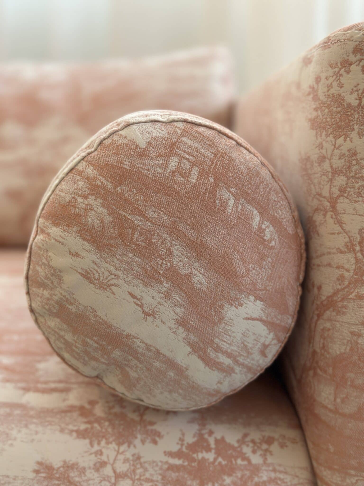 Showpiece i eksklusiv og helt særlig tekstil fra Rubelli. 2,5 personers sofa i smukt design. 3 runde puder følger med.