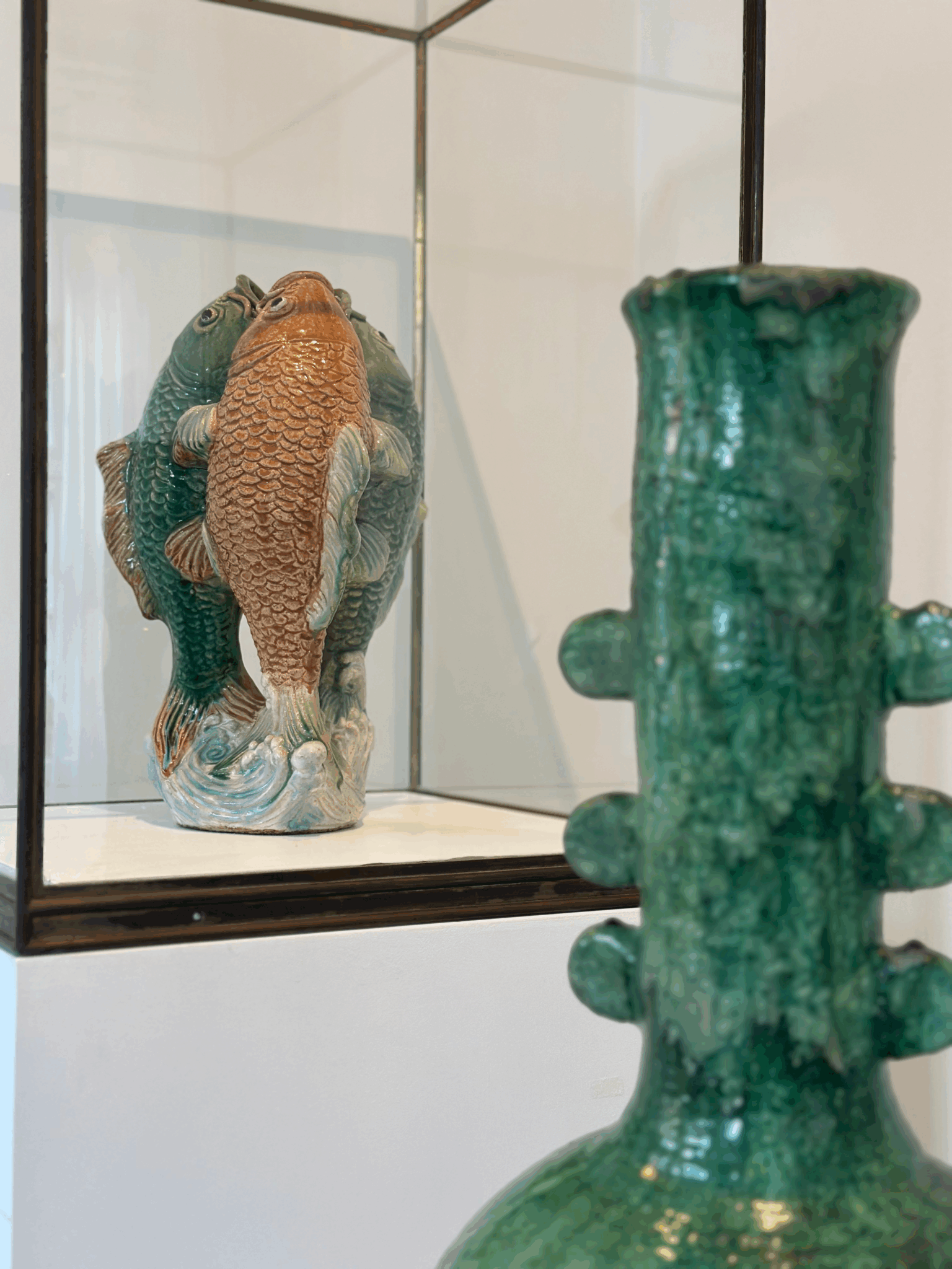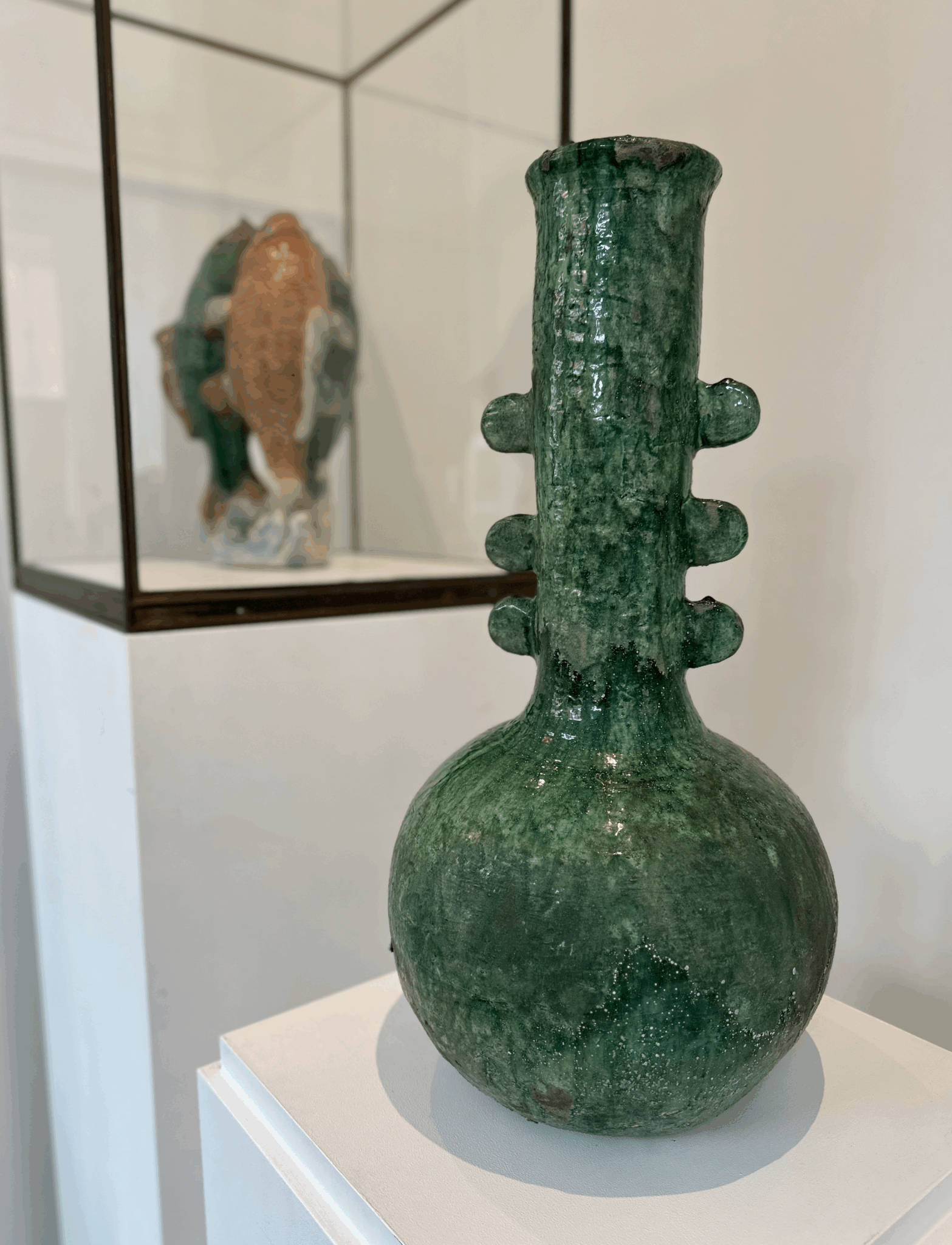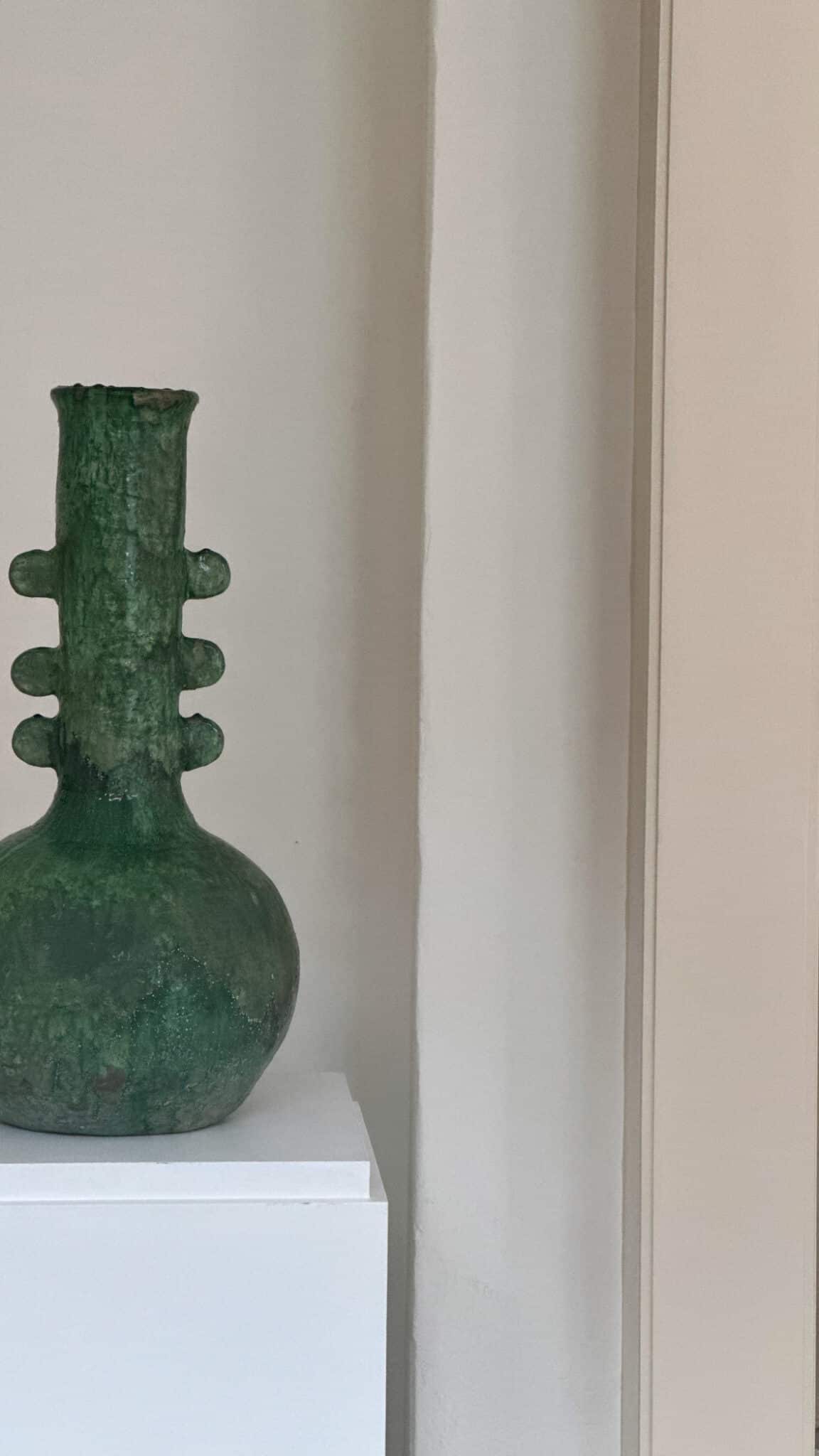 Spansk vase / skulptur med tyk glasur i grønne nuancer. Håndlavet ca 1960’erne i Andalusien, Spanien.