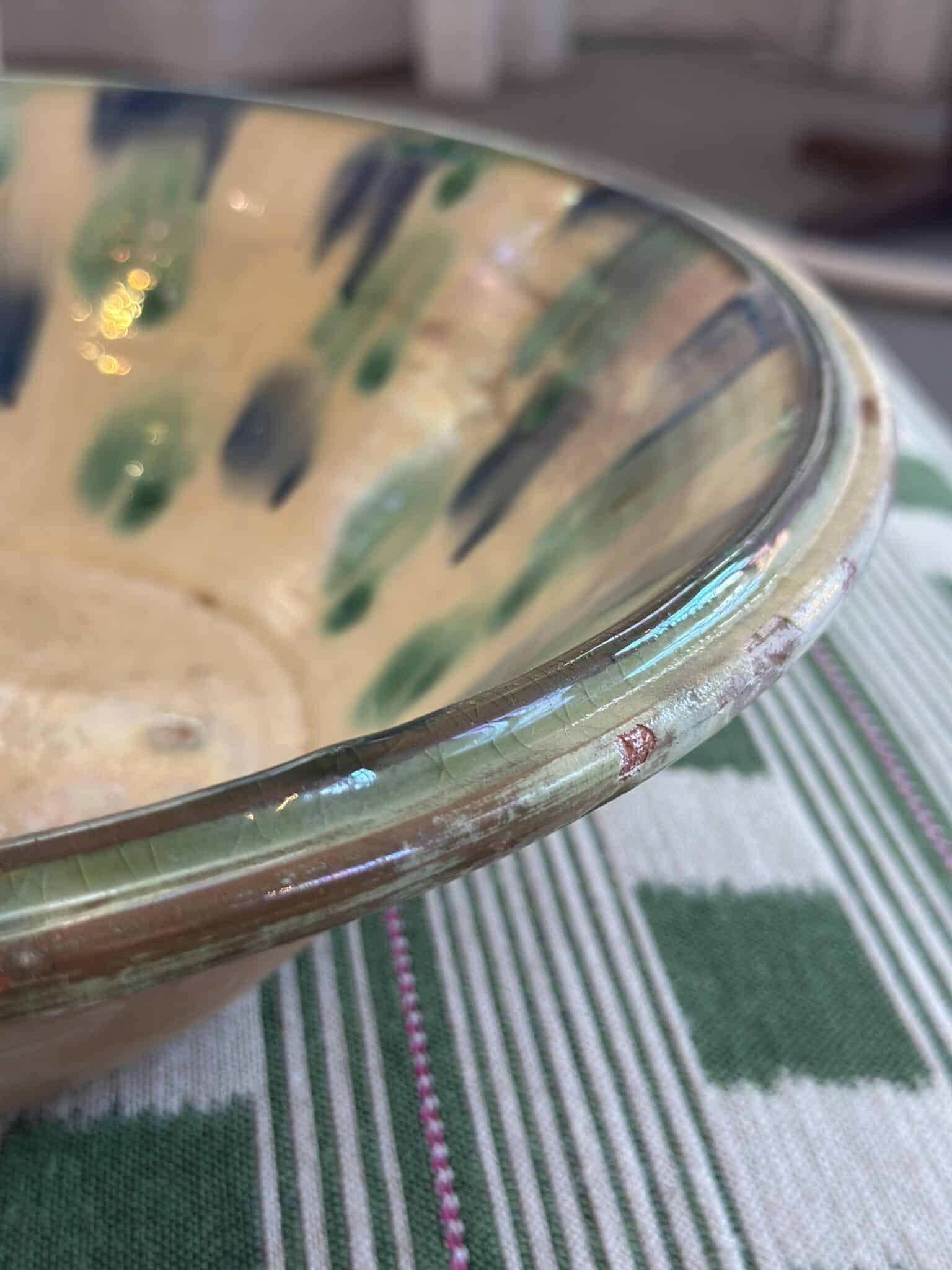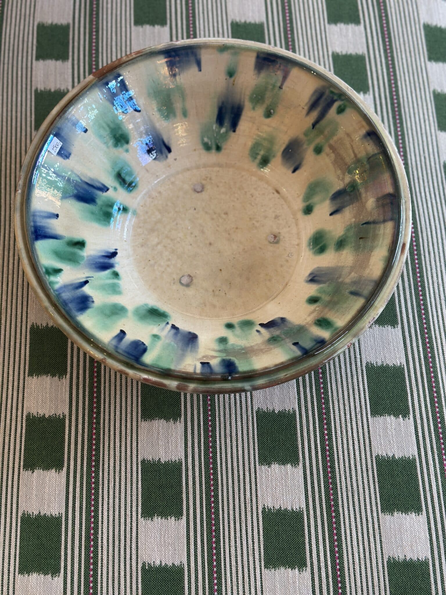 Smuk spansk fad fra starten af det 19. århundrede. Fantastisk glasurarbejde i grønne og blå nuancer.