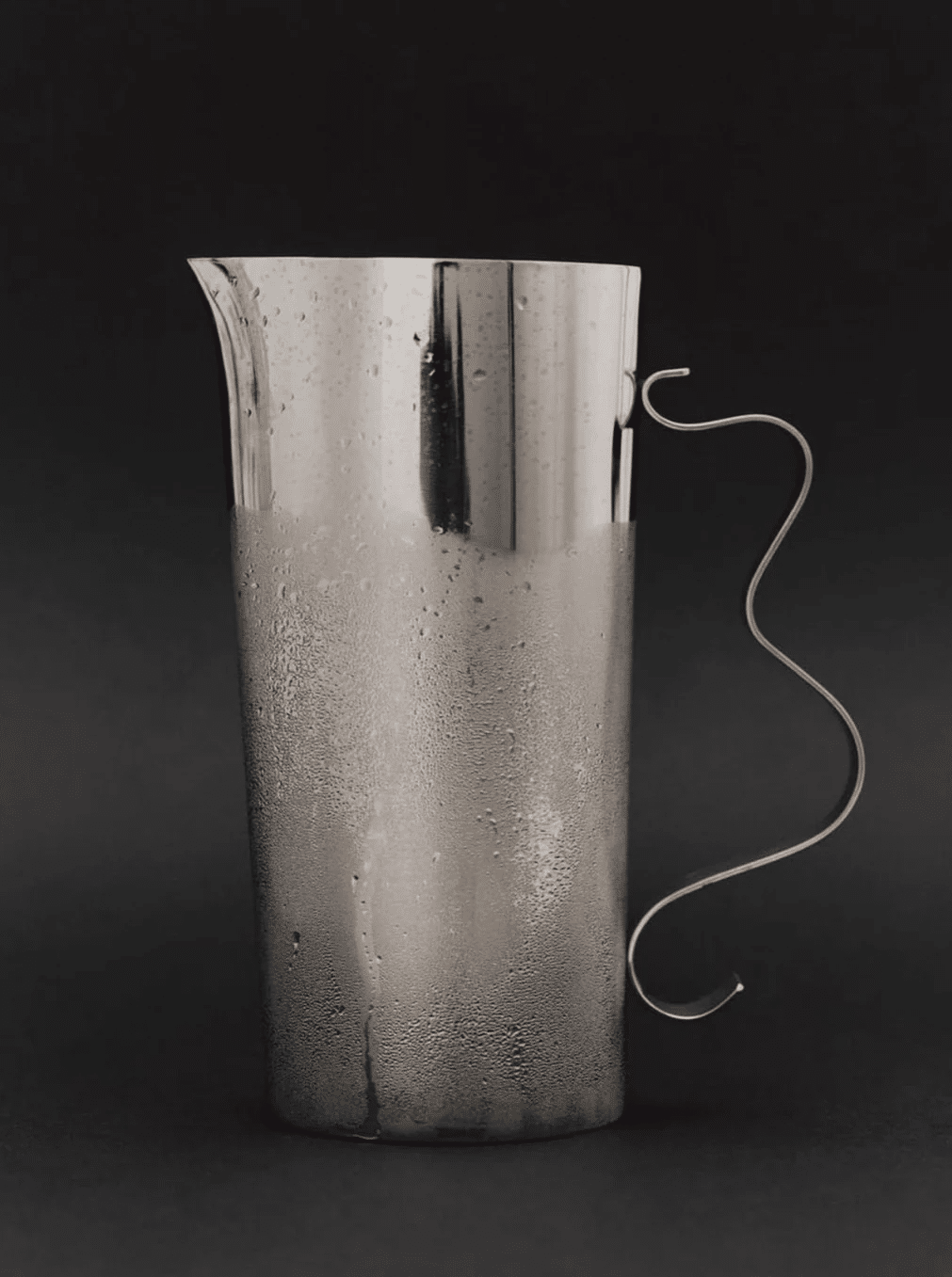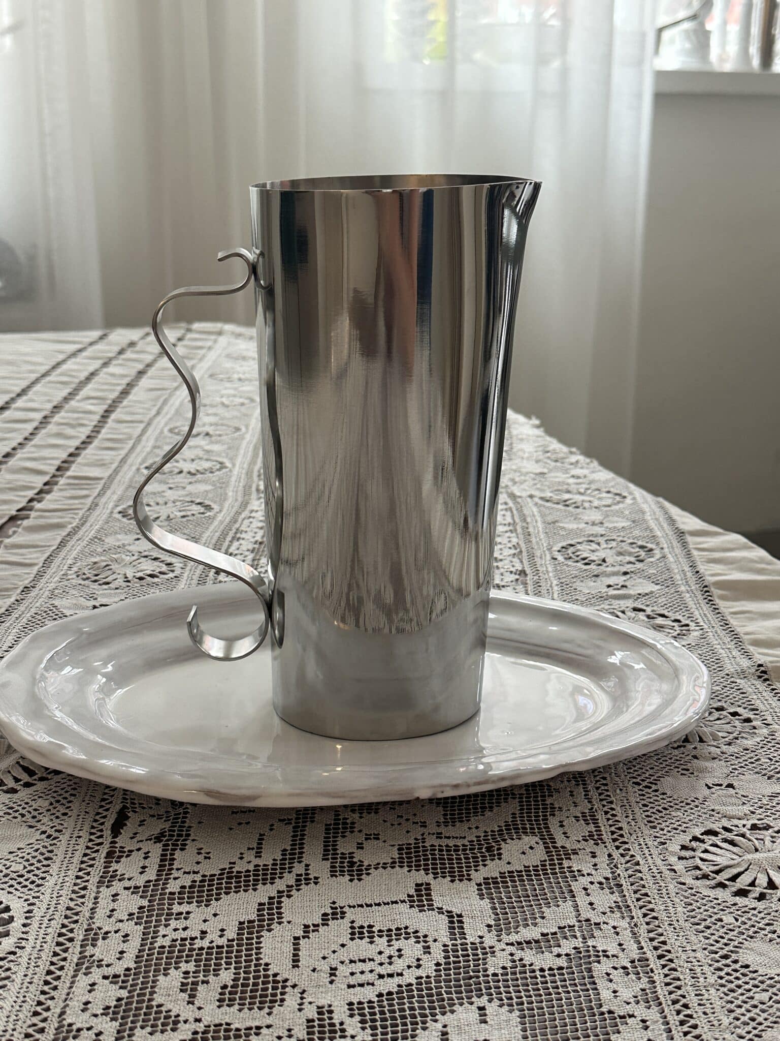 En skøn kande i poleret, rustfrit stål designet af Sophie Lou Jacobsen. Kanden har en finurlig bølget hank, der er inspireret af et blødt silkebånd. En smuk kombination af det stilrene minimalistiske stål og den poetiske hank.