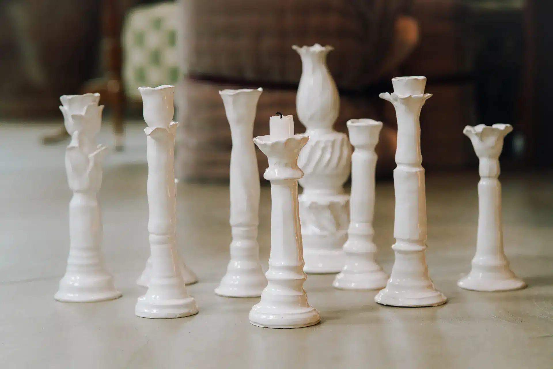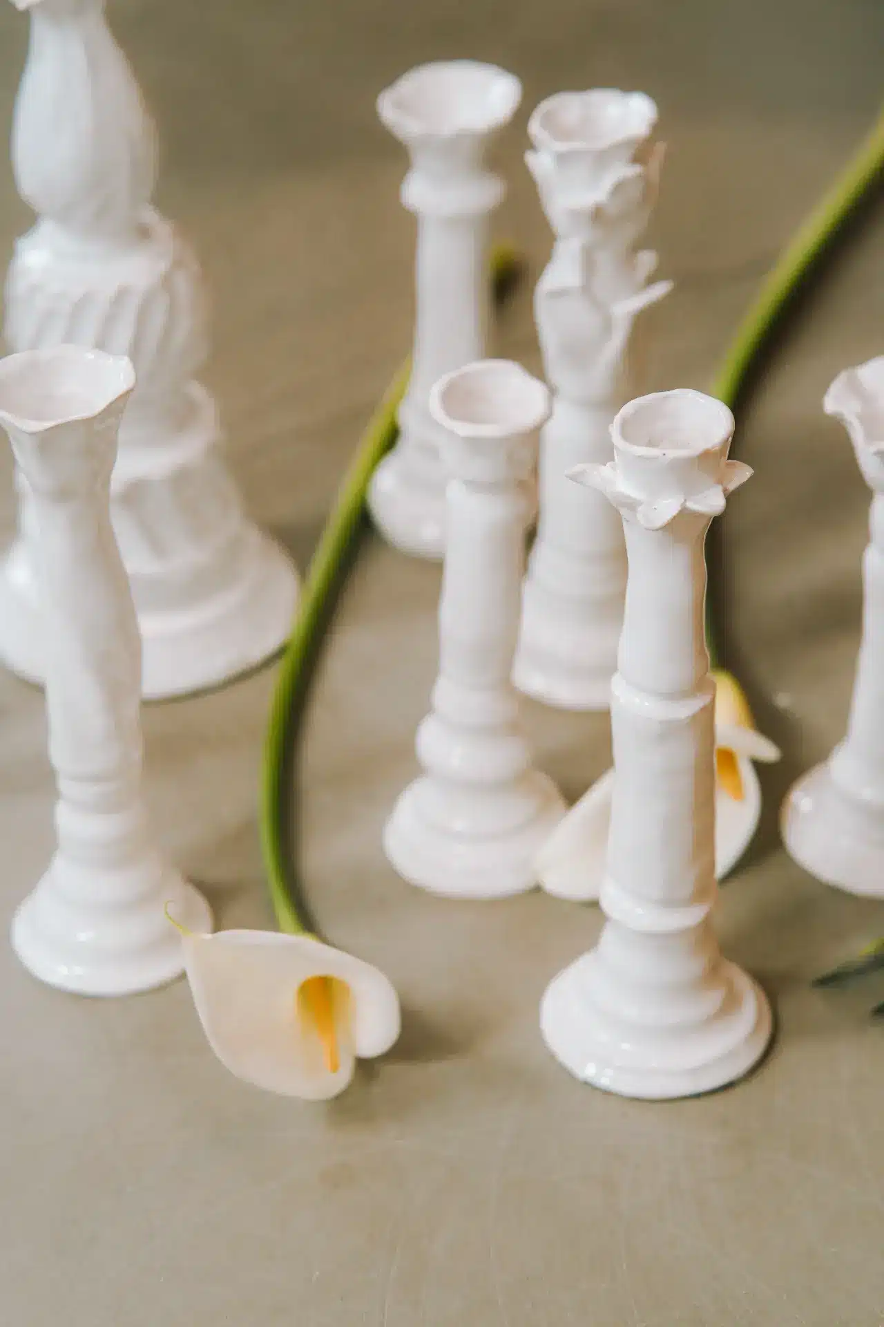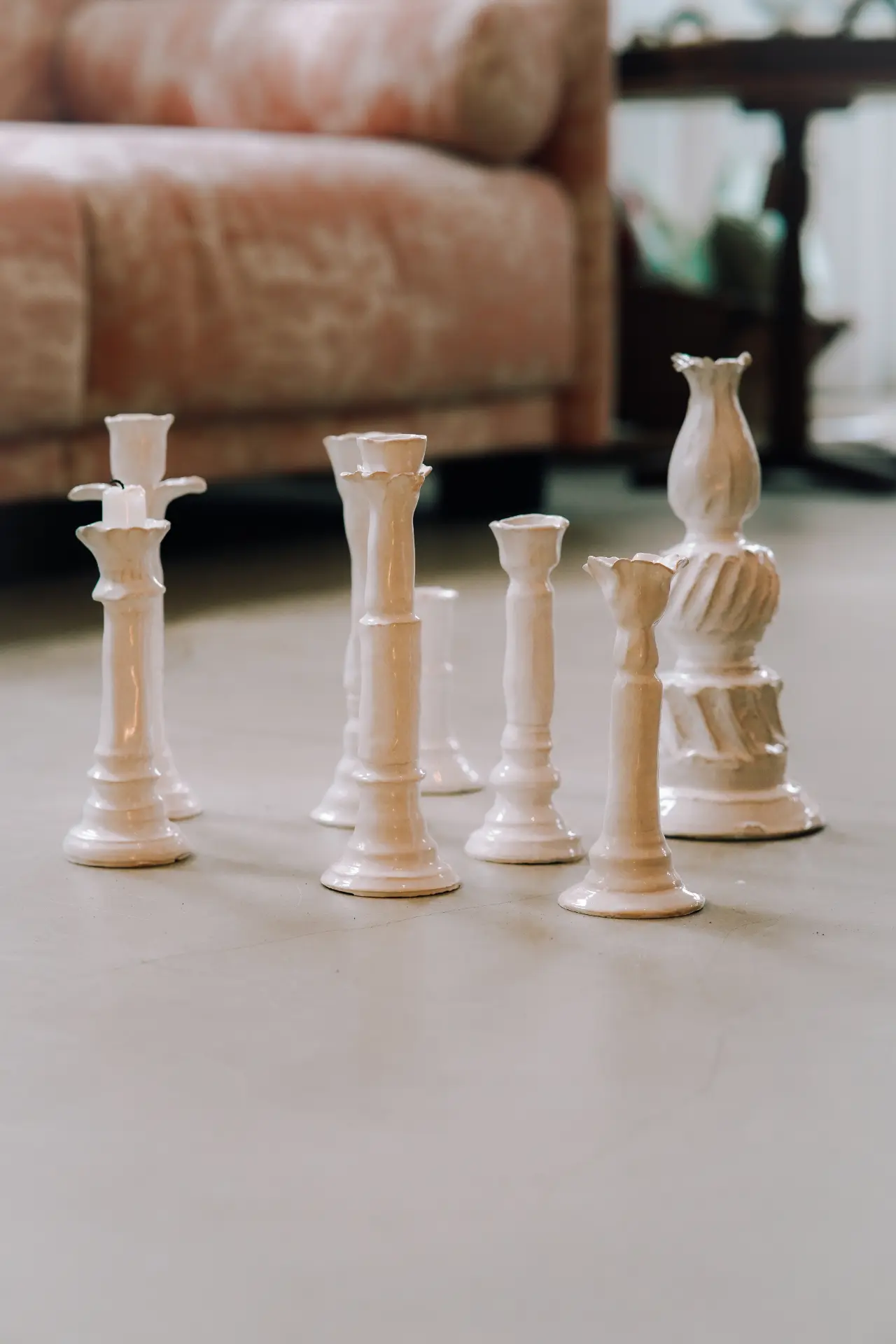 Håndlavet, one-of-a-kind lysestage i keramik med hvid glasur.